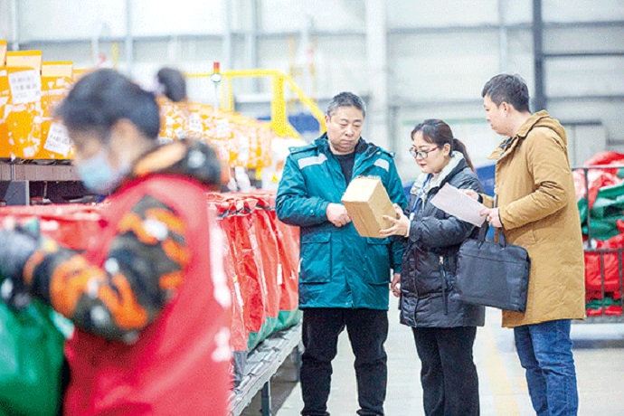 河南省漯河市郾城區(qū)紀委監(jiān)委緊盯“四風”新動向、新表現(xiàn),嚴查快遞送禮等隱形變異行為。圖為該區(qū)紀檢監(jiān)察干部在轄區(qū)物流園區(qū)核實相關(guān)問題線索。王曉 攝