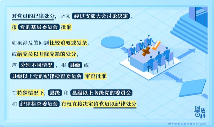 對(duì)黨員的紀(jì)律處分,必須經(jīng)過支部大會(huì)討論決定,報(bào)黨的基層委員會(huì)批準(zhǔn);