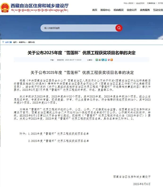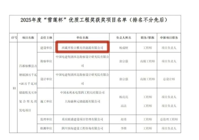 8月7日,西藏自治區(qū)住房和城鄉(xiāng)建設(shè)廳公布2025年度“雪蓮杯”優(yōu)質(zhì)工程獲獎項目名單,由西藏開投吉雅光伏公司投資建設(shè)的昌都察雅縣吉塘鎮(zhèn)20萬千瓦+16萬千瓦時儲能牧光互補(bǔ)復(fù)合型光伏發(fā)電項目榮獲該獎項。