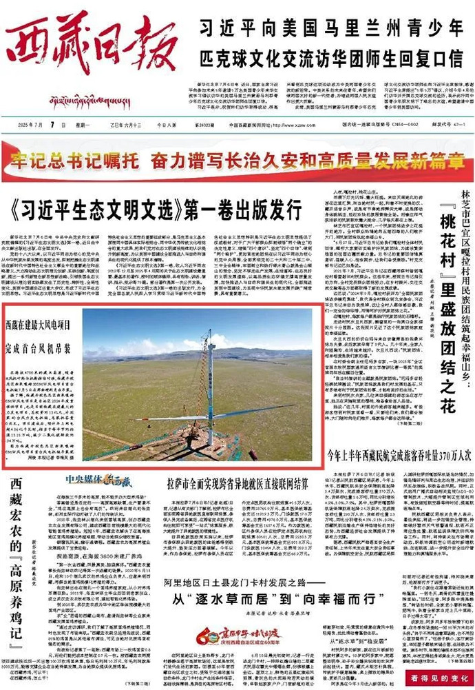 媒體報道丨西藏在建最大風(fēng)電項目完成首臺風(fēng)力發(fā)電機(jī)組吊裝
