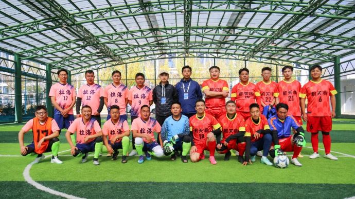 足球比賽賽前合影。