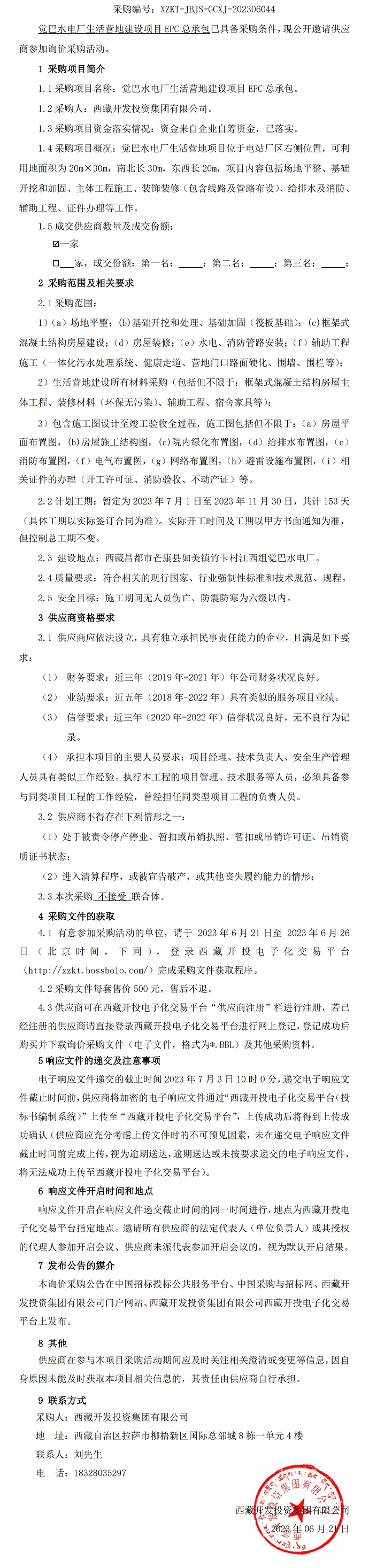 覺(jué)巴水電廠生活營(yíng)地建設(shè)項(xiàng)目EPC總承包詢(xún)價(jià)采購(gòu)公告